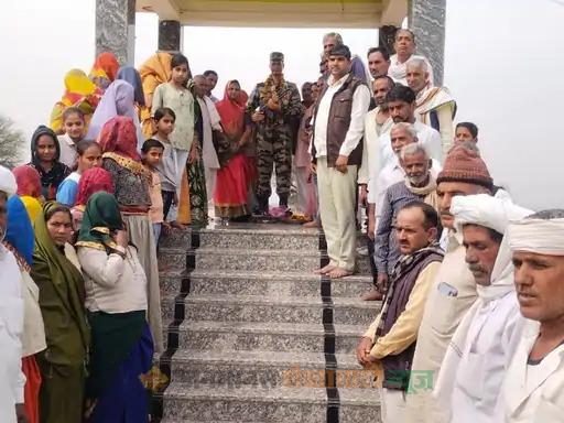 इस दौरान पूनम धर्मपाल गुर्जर ने शहीद वीरांगना सुनीता गुर्जर, शहीद के बेटे खुशांक व र्दुजांश को माला पहनाकर सम्मान किया। इस मौके पर मैदाराम, महेश, बाबूलाल अवाना, शीशराम, कृष्ण मुकदम, मुकेश, पुरूषोत्त्म, कृष्ण कुमार, नानक ठेकेदार, गुलझारी लाल, सत्यप्रकाश, रामरतन, शीशराम भगत, चून्नीलाल, नारायण सिंह, नरेश, सीताराम, रामरतन, उमाशंकर सहित कई ग्रामीण मौजूद थे।