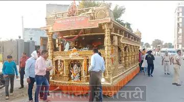 झुंझुनूं : राम राज्य दिग्विजय रथ पहुंचा झुंझुनूं:पुष्प वर्षा कर जोरदार स्वागत किया, राम मंदिर के दर्शन किए