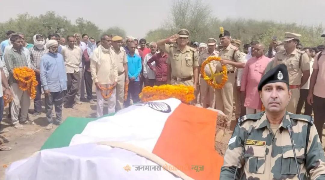 पार्थिव शरीर शनिवार सुबह बीएसएफ की 162वीं बटालियन की टुकड़ी पिलानी लेकर पहुंची। तिरंगा यात्रा के साथ शव को बनगोठड़ी गांव लाया गया। तिरंगे में लिपटा शव घर पहुंचा तो मां और पत्नी सुमन (38) बेसुध हो गईं। जवान के दिव्यांग बेटे आशीष (19) और बेटी मीतल (16) पिता से लिपट कर रो पड़े। बनगोठड़ी गांव के मुक्ति धाम में सैन्य सम्मान के साथ अंतिम संस्कार किया गया। जवान के बेटे ने मुखाग्नि दी। सीमा सुरक्षा बल की टुकड़ी ने गार्ड ऑफ ऑनर दिया। इस दौरान वहां मौजूद ग्रामवासी देर तक देशभक्ति के नारे लगाते रहे। क्षेत्रीय विधायक पितराम सिंह काला ने भी श्रद्धांजलि दी।