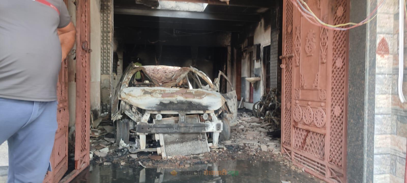 घनश्याम सोनी के घर पर लगी आग में 60 लाख का सामान सहीत ₹5 लाख रुपए जल कर हुए राख आग की चपेट एक फोर व्हीलर दो मोटरसाइकिल भी जलकर हुई राख, घनश्याम सोनी व उसका साला सत्य प्रकाश सोनी आग में झूलसे सत्य प्रकाश सोनी की हालत गंभीर होने पर नीमकाथाना में करवाया भर्ती, सुबह 10:00 बजे की घटना सूचना पर पहुंची पुलिस व दमकल ने बड़ी मशक्कत के बाद आग पर पाया काबू