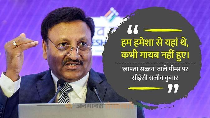 - सीईसी राजीव कुमार ने सोशल मीडिया पर चुनाव आयुक्तों को ‘लापता सज्जन’ कहे जाने वाले मीम्स पर कहा कि हम हमेशा से यहां थे, कभी गायब नहीं हुए।