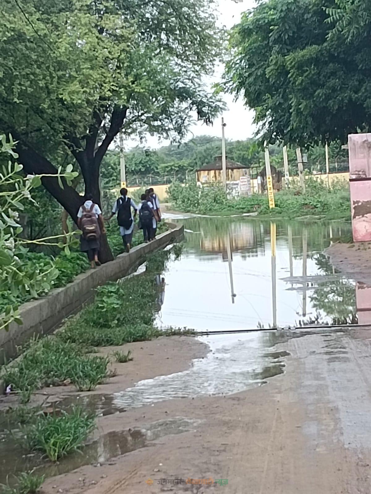 मुकुंदगढ़ : मुकुंदगढ़ निकटवर्ती ग्रामपंचायत डूमरा में बरसात का पानी इकट्ठा होने से लोगों को परेशानी का सामना करना पड़ रहा है, विजयपाल मलोवा ने बताया कि पटवार घर के सामने से गौरवपथ बना हुआ जिस पर हर वर्ष बरसात का पानी इकट्ठा हो जाता है जिस पर ग्रामपंचायत कोई ध्यान नहीं दे रही है, ऐसे में यहां से दो पहिया वाहन का निकलना मुश्किल हो जाता है,यही नजदीक राजकीय उच्च माध्यमिक विद्यालय भी है जिसमे छोटे छोटे बच्चे भी दूर दूर से पढ़ने को पैदल आते है,जब इस तालाब को पार करने के लिए जाते है तो गौरव पथ पर बनी 7 इंच की नाली की दीवार पर से गुजरना पड़ता है,जिसमे में एक तरफ नदीक में खेत मे खाई बनी हुई है दूसरी तरफ बरसात का पानी वही नाली की दीवार में विधूत विभाग के पोल की तान का तार गढ़ा हुआ है इसीलिए कभी भी करंट की संभावना बन सकती है,फिर भी ग्रामपंचायत का इस पर कोई ध्यान नहीं दिया जा रहा है,नन्ही जिंदगियो से कही लोगों की जिंदगी के साथ यह खिलवाड़ किया जा रहा है ऐसे में प्रसासन से उमीद है कि इस पर तुरंत प्रभाव से ध्यान दिया जाए
