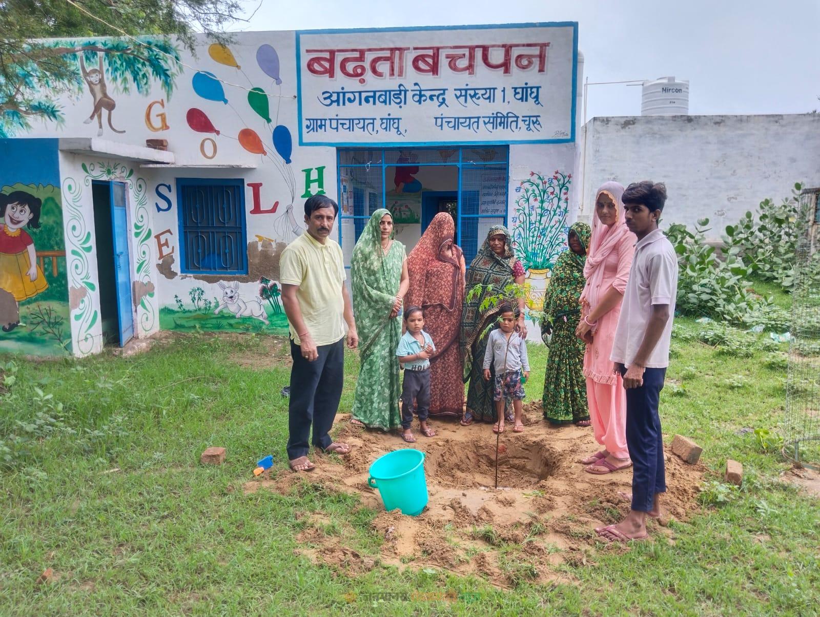 चूरू : जिला कलक्टर पुष्पा सत्यानी के आह्वान पर जिलेभर में पौधरोपण का काम जोरशोर से चल रहा है। इसी क्रम में, गांव घांघू के पर्यावरण प्रेमी हीराराम प्रजापत की पुण्यतिथि पर 21 जुलाई से सार्वजनिक स्थानों पर शुरू किया गया पौधरोपण लगातार जारी है। इसी के तहत शनिवार को हनुमान मंदिर में गुलमोहर, बकान, गुड़हल, बिल्व पत्र, तुलसी सहित छायादार और सजावटी पौधे लगाए गए। गांव के आंगनबाड़ी केंद्र प्रथम पर भी छायादार पौधे लगाए गए। गांव के अन्य सार्वजनिक स्थानों पर पौधारोपण किया गया।