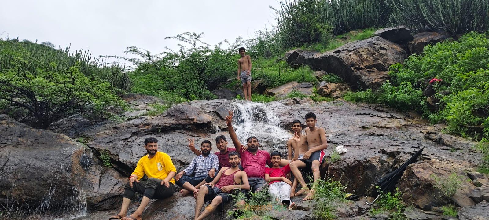किशोरपुरा-पौंख की पहाड़ियों से बहने लगे झरने देखने उमड़े ग्रामीण