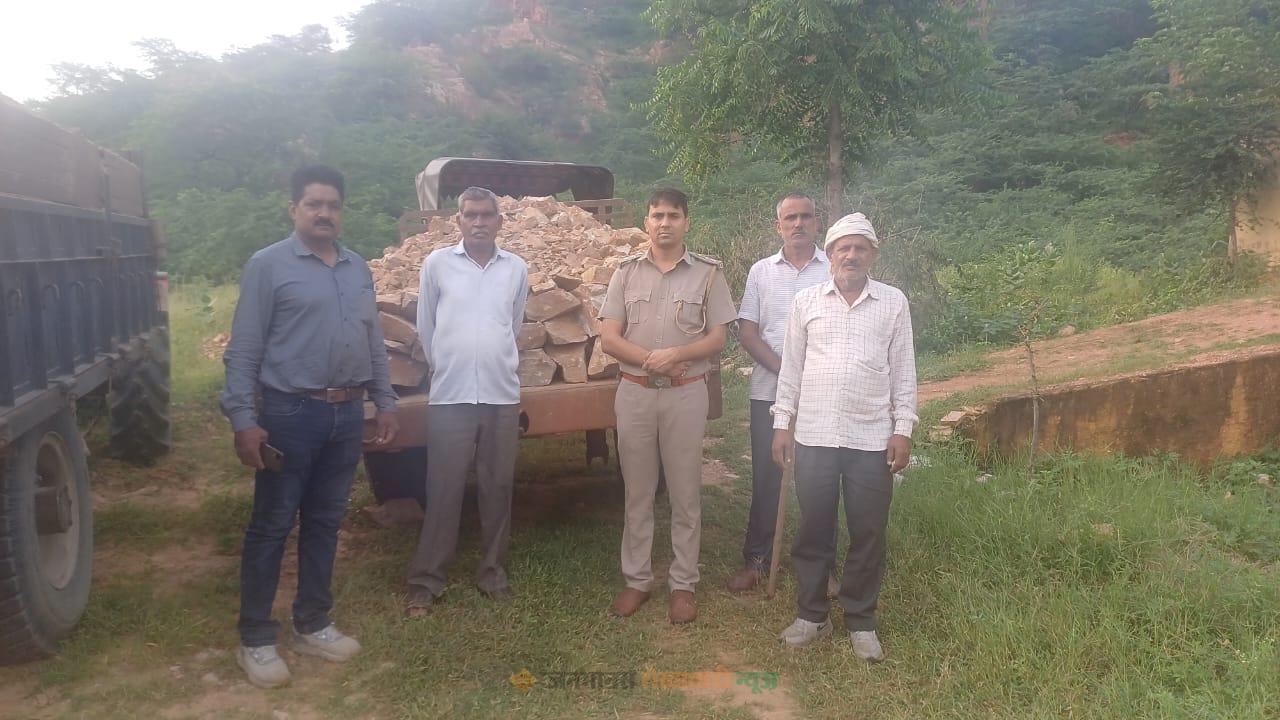 खेतड़ी : खेतड़ी क्षेत्र में मंगलवार को अवैध खनन और लकड़ियों की तस्करी के खिलाफ वन विभाग की टीम ने कार्रवाई की है। वन विभाग की टीम ने अरावली क्षेत्र से खनन कर पत्थरों से भरे ट्रैक्टर और हरि लकड़ियों से भरी पिकअप को जब्त किया गया है।