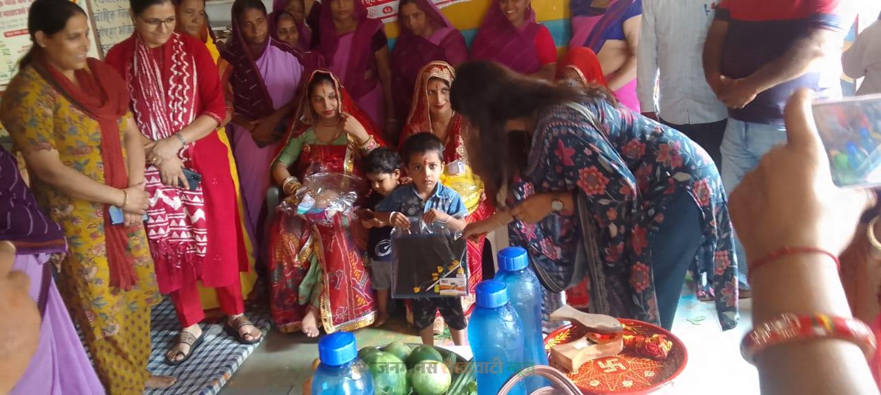पोषण माह के अंतर्गत मंगलवार को हुई गोद भराई की रस्म