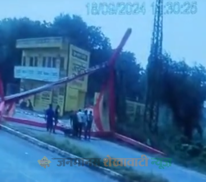 झुंझुनूं : झुंझुनूं में आज तेज हवा के साथ आए झोंके से हादसा हो गया। स्वागत द्वार उखड़कर सड़क पर चल रहे बाइक सवार पर गिरा गया। हादसा आज सुबह लगभग साढे़ 11 बजे नवलगढ़ रोड़ पर स्थित टोल के पास हुआ।