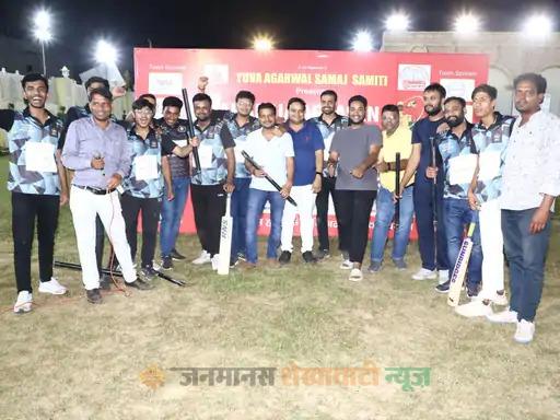 रॉयल्स क्रिकेट क्लब के कप्तान रुपिन चेतानी के नेतृत्व में टीम ने जीत हासिल की। उपविजेता महाकाल क्लब झुंझुनूं का भी पूरे टूर्नामेंट में अच्छा माहोल और प्रदर्शन रहा। विजेता टीम का स्पॉन्सर निवारा एकेडमी द्वारा किया गया था। जिसके लिए एकेडमी की डायरेक्टर दीपा और इंद्रजीत ने पूरी टीम को बधाई दी। क्रिकेट प्रतियोगिता का फाइनल रात 1 बजे हुआ। अग्रवाल समाज के लोगों ने बताया कि महाराजा अग्रसेन जयंती को लेकर विभिन्न प्रतियोगिताएं आयोजित हो रही है। बैडमिंटन प्रतियोगिता आज जेपी पैलेस में आयोजित होंगी। युवा अग्रवाल समाज के लोगों ने बताया कि क्रिकेट प्रतियोगिता में कुल 17 टीमों ने भाग लिया था। देर रात को रॉयल्स क्रिकेट क्लब और महाकाल क्लब झुंझुनू के बीच कड़ा मुकाबला हुआ। जिसमें रॉयल क्रिकेट क्लब ने जीत हासिल की। वहीं उपविजेता महाकाल क्लब टीम झुंझुनूं रही।