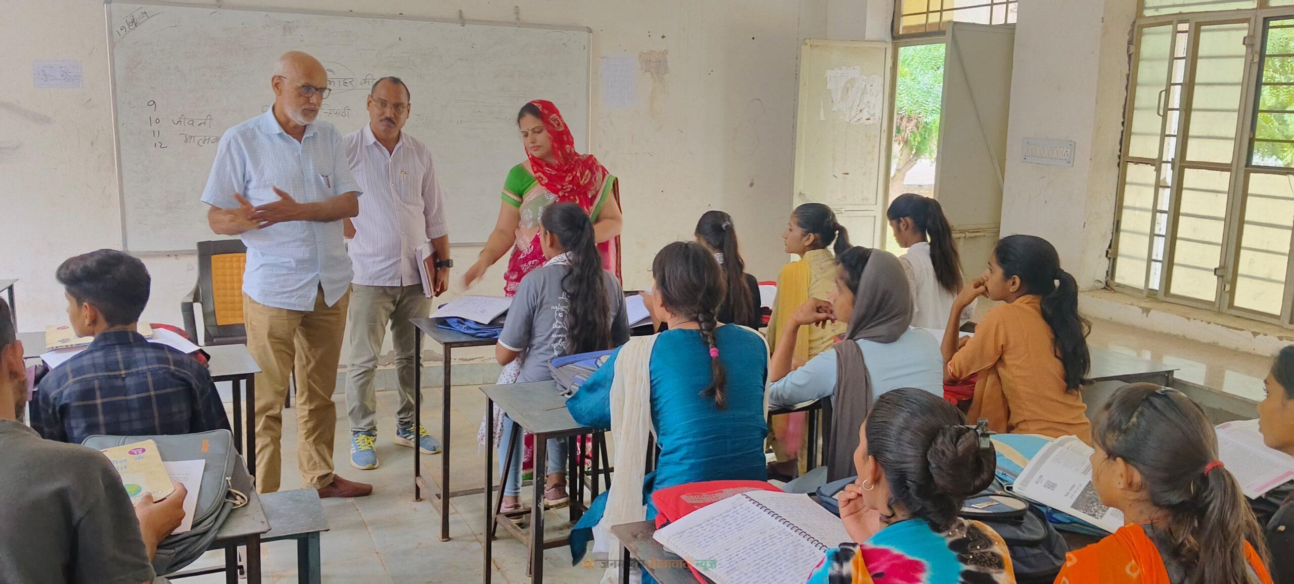 चूरू : चूरू सीबीईओ ओमदत्त सहारण ने शुक्रवार को चूरू ब्लॉक के विभिन्न स्कूलों का औचक निरीक्षण किया। उन्होंने राउमावि गाजसर, राउमावि कड़वासर में निरीक्षण के दौरान उन्होंने पोषाहार की सघन जांच, रसोई घर की साफ-सफाई, अनाज के स्टॉक एवं रख- रखाव, बच्चों के शैक्षिक स्तर, ग्रह कार्य मूल्यांकन, शौचालयों की साफ-सफाई आदि व्यवस्थाओं का अवलोकन कर आवश्यक निर्देश दिए। निरीक्षण के दौरान सीबीईओ सहारण बच्चों से रूबरू हुए। उन्होंने बच्चों को प्रोत्साहित करते हुए कहा कि कठिन परिश्रम का कोई विकल्प नहीं है, जीवन में आगे बढ़ने के लिए कड़ी मेहनत करें। निश्चित लक्ष्य के साथ सम्पूर्ण लगन से मेहनत सफलता के रूप में प्राप्त होगी। इस अवसर पर आरपी श्याम सुंदर पूनिया ने इंस्पायर अवॉर्ड, शाला स्वास्थ्य परीक्षण पूर्ण करवाने के निर्देश दिए। कड़वासर राउमावि प्रधानाचार्य स्वीटी शर्मा एवं राउमावि गाजसर प्रधानाचार्य बजरंग सैनी ने विद्यालय व्यवस्थाओं की जानकारी दी।