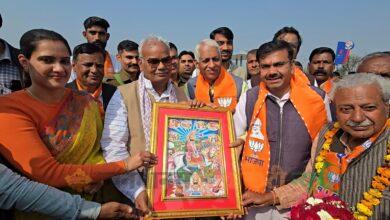 नवलगढ़ सीमा पर भाजपा प्रदेशाध्यक्ष मदन राठौड़ व मंत्री मदन दिलावर का भव्य स्वागत