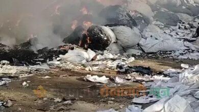 सुजानगढ़ के प्रगति नगर में खेत में लगी आग:स्क्रैप गोदाम को चपेट में लिया, 3 घंटे में पाया काबू