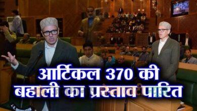 जम्मू कश्मीर : जम्मू कश्मीर विधानसभा में बुधवार को अनुच्छेद 370 की बहाली का प्रस्ताव पास किया गया। बीजेपी विधायकों…