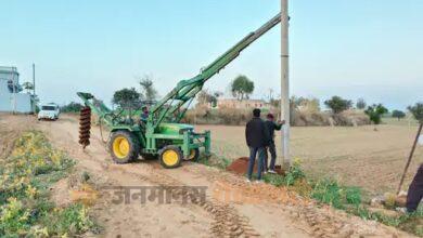 जाखल : जाखल गांव में बाईपास रोड के पास किसानों ने 33 केवी बिजली लाइन बिछाने के कार्य का विरोध…