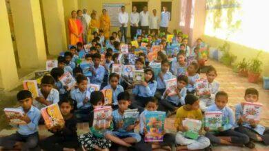 चिड़ावा के अडूका में रिटायर अधिकारी का सामाजिक सरोकार:स्कूल में बच्चों को बांटी नोटबुक और किताब, पढ़ाई के लिए किया प्रेरित