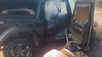 चिड़ावा में चलती थार में लगी आग:इंजन से धुआं निकलते देख सवारियां उतरी, दमकलकर्मियों ने पाया काबू