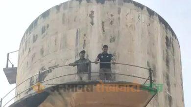 झुंझुनूं के नहरड़ में पानी की टंकी पर चढे़ ग्रामीण:जलदाय विभाग पर अनदेखी के आरोप, समझाइश पर नीचे उतरे