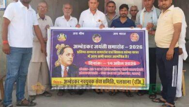 पलसाना : पलसाना में डॉ. भीमराव अम्बेडकर की 135वीं जयंती पर कार्यक्रमों का आयोजन किया जाएगा। अम्बेडकर नवयुवक सेवा समिति…