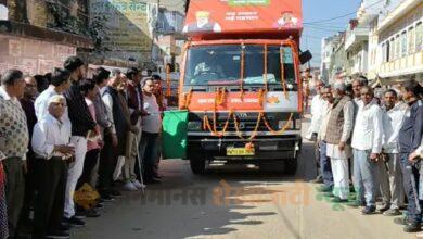 श्रीमाधोपुर में विकास रथ को दिखाई हरी झंडी:सरकारी योजनाओं का होगा प्रचार-प्रसार, 13 तक उपलब्धियां बताएगा