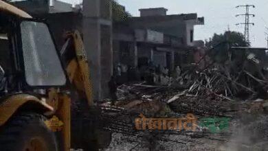 निर्माणाधीन स्वागत द्वार का अड्डा टूटा, 5 मजदूर गिरे नीचे