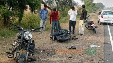 राजगढ़ में दो बाइक की टक्कर, एक युवक की मौत:एयरफोर्स कर्मी गंभीर घायल, निजी अस्पताल में भर्ती, हेलमेट की वजह से बची जान