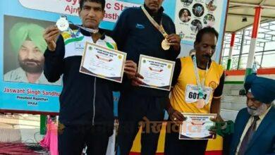 जोगेंद्र फगेडिया ने राष्ट्रीय मास्टर्स एथलेटिक्स में जीते तीन गोल्ड:लंबोर बड़ी के एथलीट ने किया राजस्थान का प्रतिनिधित्व, 60+ आयु वर्ग में जीते मेडल