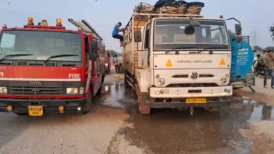सूरजगढ़ में चलते ट्रक में लगी आग:शॉर्ट सर्किट के कारण हुआ हादसा, फायर ब्रिगेड की तत्परता से टला बड़ा हादसा