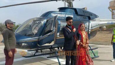 हेलिकॉप्टर से दुल्हन को किया विदा:एक रुपए और नारियल लेकर की शादी, हरियाणा से नवगढ़ आई थी बारात