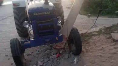 मूंडरू में ट्रैक्टर की टक्कर से बिजली पोल टूटा:श्रीमाधोपुर-अजीतगढ़ हाईवे पर अलसुबह हुआ हादसा, क्षेत्र में बिजली आपूर्ति बाधित हुई