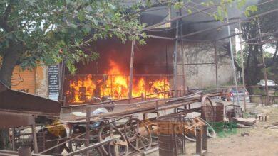 बाइक सर्विस सेंटर के बाहर लगी भीषण आग, बाइक और कार जलकर राख