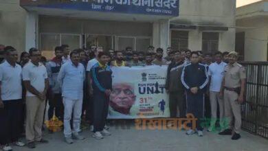 नीमकाथाना में पुलिस की रन फॉर यूनिटी दौड़:पुलिस जवान, सीएलजी सदस्य और युवा एक किमी दौड़े, राष्ट्रीय एकता की शपथ ली