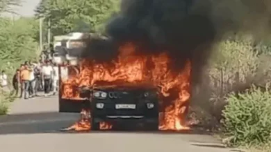 झुंझुनूं में स्कॉर्पियो में लगी आग,पांच बच्चे अंदर फंसे:भांजी की शादी में भात भरने जा रहे थे; गाड़ी के शीशे तोड़ सभी को बाहर निकाला