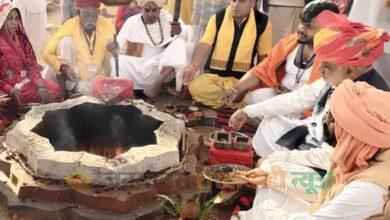 मंत्री झाबर सिंह खर्रा और पूर्व केंद्रीय मंत्री खंडेला पहुंचे:108 कुंडात्मक श्री गोपाल महायज्ञ के प्रधान कुंड पर आहुतियां दी