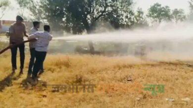 करणी माताजी मंदिर के पास खेतों में लगी आग:दमकल की गाड़ियों ने बुझाई, खाटूश्यामजी सड़क मार्ग पर हादसा हुआ