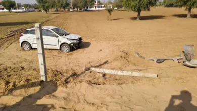 गाय बचाने में अनियंत्रित होकर खेत में जा गिरी कार