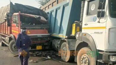 सादुलपुर में शराब से भरा कैंटर ट्रक में घुसा:राजगढ़-पिलानी मार्ग पर हुआ सड़क हादसा, ड्राइवर सुरक्षित