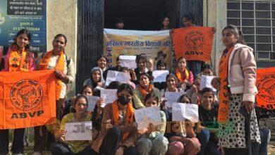 श्री कल्याण गर्ल्स कॉलेज में हॉस्टल को लेकर एबीवीपी का विरोध प्रदर्शन