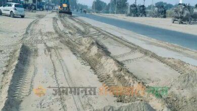 सरदारशहर : सरदारशहर में पर्यावरण चौक से बीकानेर रोड तक सड़क के दोनों ओर जमा मिट्टी को जेसीबी से हटाने…