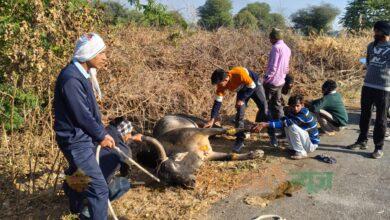 जसरापुर में वाहन की टक्कर से गोवंश घायल:गोरक्षकों और पशु चिकित्सा टीम ने किया उपचार, गौशाला भेजा