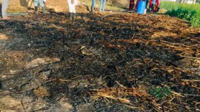 कोटड़ी धायलान में आग लगी:दो हजार कड़बी के पुले जले, दमकल ने पाया काबू