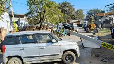 पलसाना-गोवटी सड़क पर 11केवी खंभे से टकराई कार:दो टुकड़ों में टूटा, चालक फरार; पुलिस जांच में जुटी