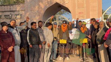जनमानस शेखावाटी संवाददाता : मोहम्मद अली पठान चूरू : जिला मुख्यालय पर कश्मीर से कन्याकुमारी के लिए साइकिल से ललित…