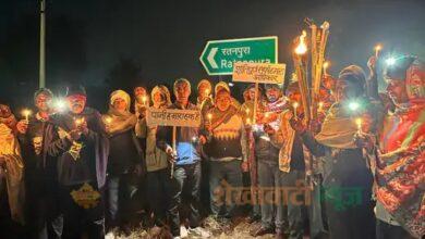 रतनपुरा में ग्रामीणों ने निकाला कैंडल मार्च:जल जीवन मिशन कार्य पर रोष, एक साल बाद भी पाइपलाइन नहीं