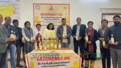 झुंझुनूं कोऑपरेटिव बैंक परिसर में कच्ची घानी मूंगफली तेल का लोकार्पण