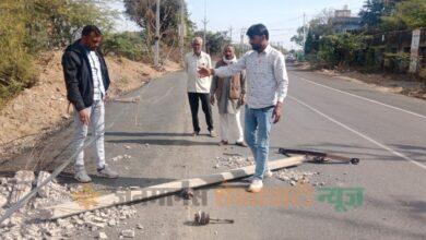 खेतड़ी में बड़ा हादसा टला: राजोता में विद्युत विभाग की अनदेखी, पुलिस चौकी के पास जर्जर विद्युत पोल सड़क पर गिरा