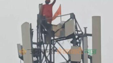 हथियार लेकर टावर पर चढ़ा युवक:6 घंटे के हाई वोल्टेज ड्रामे के बाद पुलिस ने नीचे उतारा