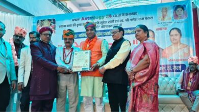 श्याम बाबा की नगरी खाटू में आचार्य अभिमन्यु पाराशर सम्मानित