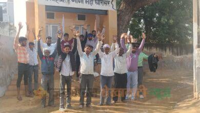धीरासर गांव के मुख्य चौक से लेकर मंदिर तक जलभराव को लेकर विरोध प्रदर्शन