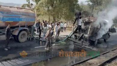 सड़क डालने वाली मशीन बनी आग का गोला, 10-15 फीट ऊंची उठी लपटें, सीकर-जयपुर नेशनल हाई-वे पर चल रहा था काम