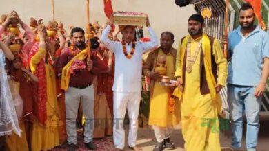 सिंघाना में श्रीमद् भागवत कथा का शुभारंभ:महिलाओं ने निकाली कलश यात्रा, आचार्य पुष्पेंद्र ने सुनाएंगे कृष्ण लीलाएं