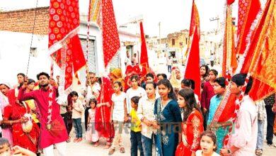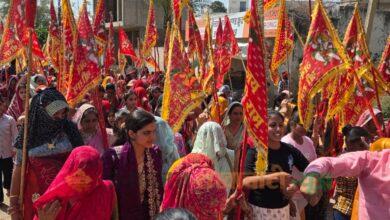मंड्रेला में पांच किलोमीटर लंबी निशान पदयात्रा निकाली, श्रद्धा और भक्ति का दिखा अद्भुत संगम